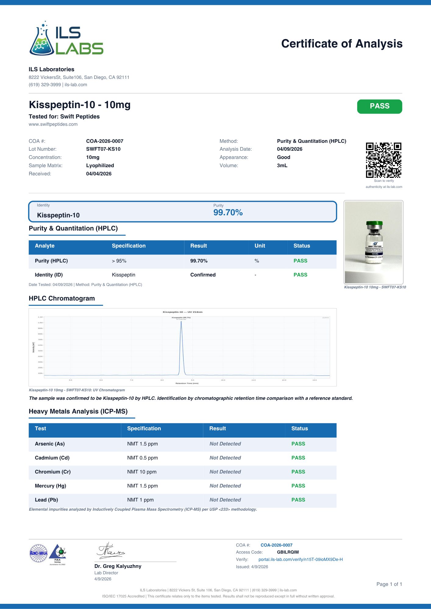Kisspeptin-10 is a synthetic peptide fragment studied in controlled laboratory research for its interaction with kisspeptin receptor pathways. It is commonly utilized in experimental models focused on peptide signaling and receptor engagement.
